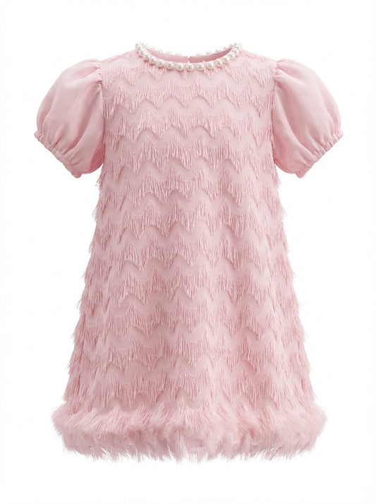 Baby Velvet Solid Frock With Bag - IMPORTED